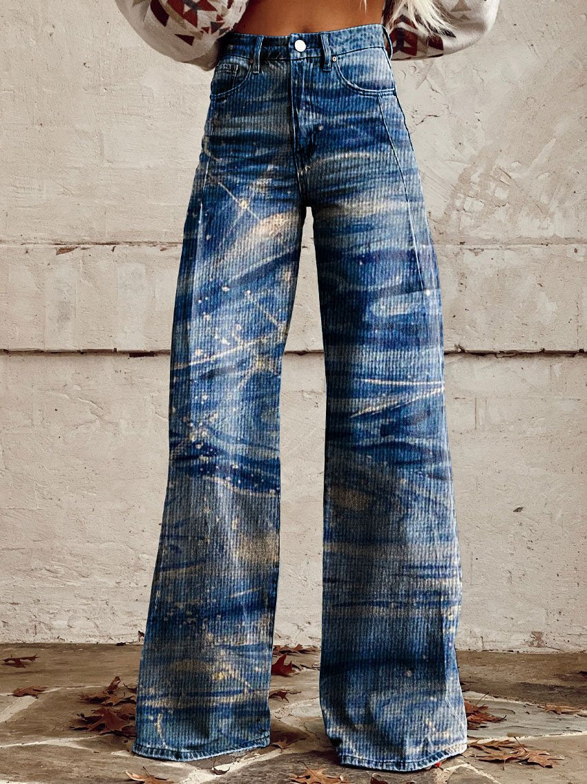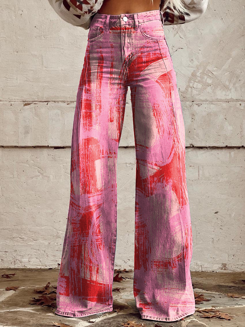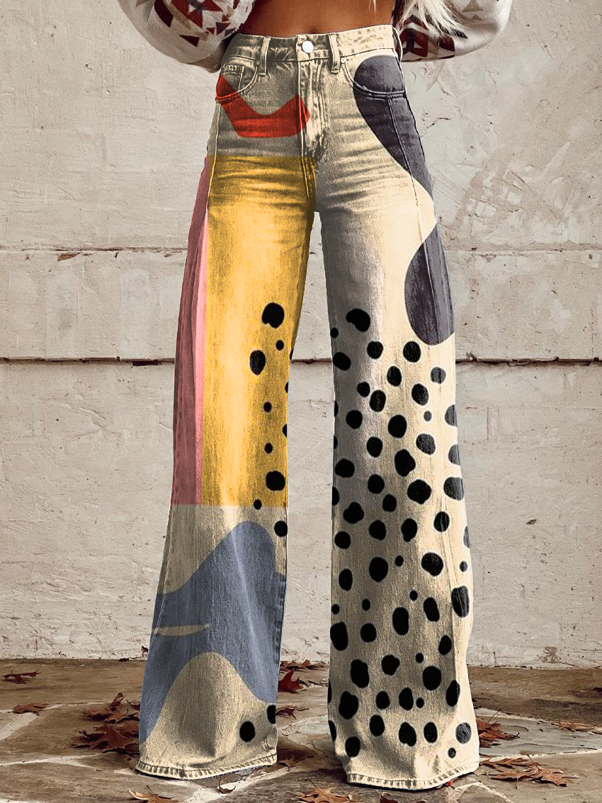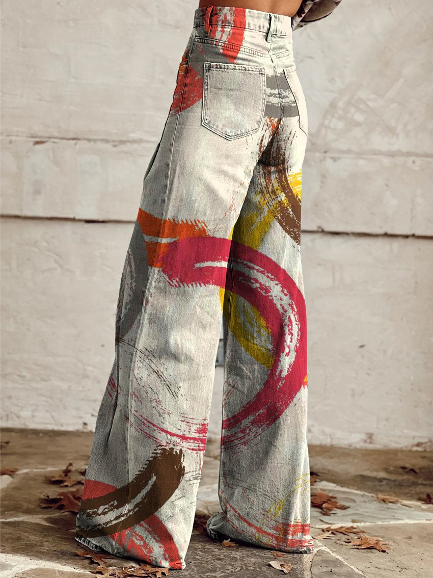 Women's Vintage Abstract Art Print Wide Leg Pants
