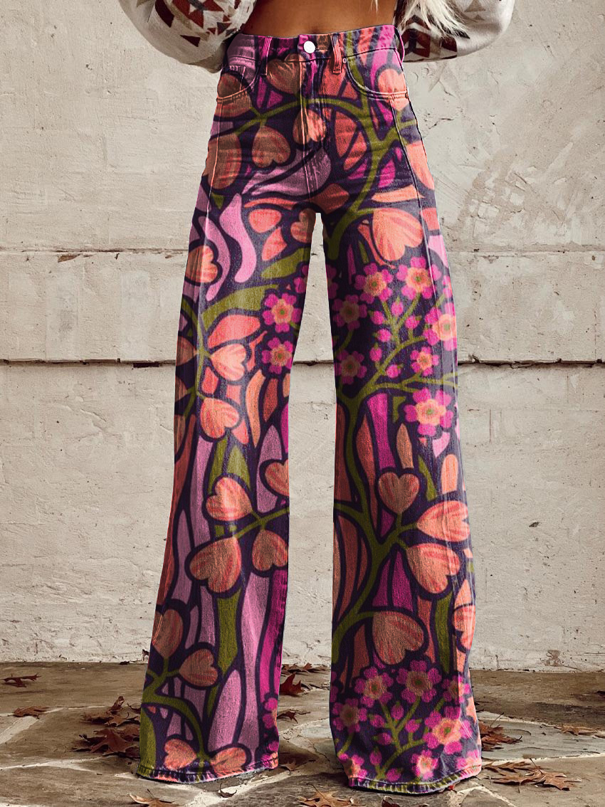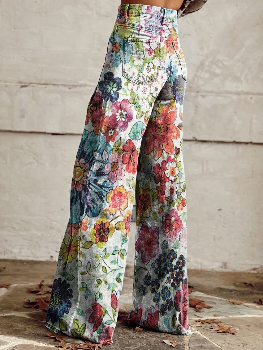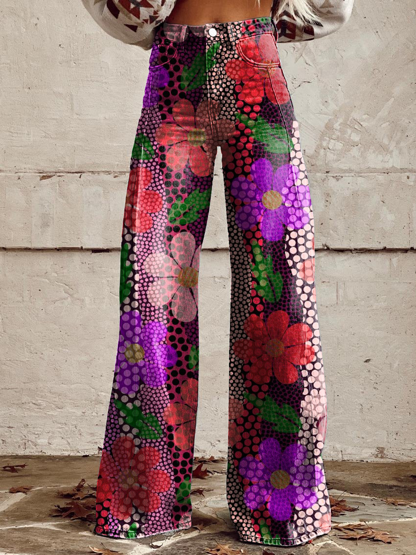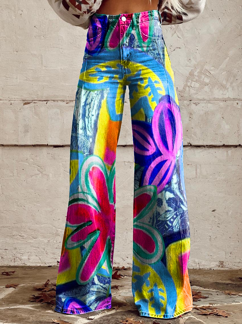 Women's Retro Colorful Floral Art Casual Wide Leg Pants