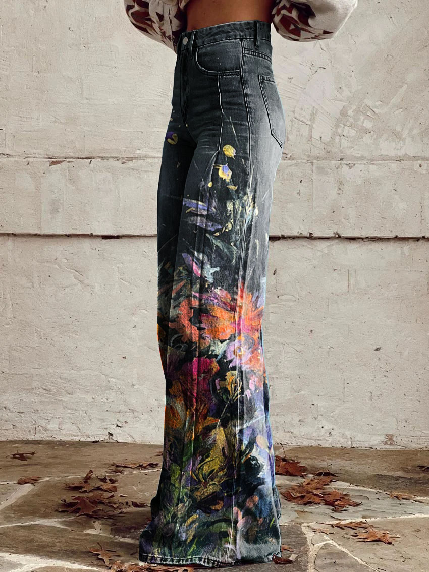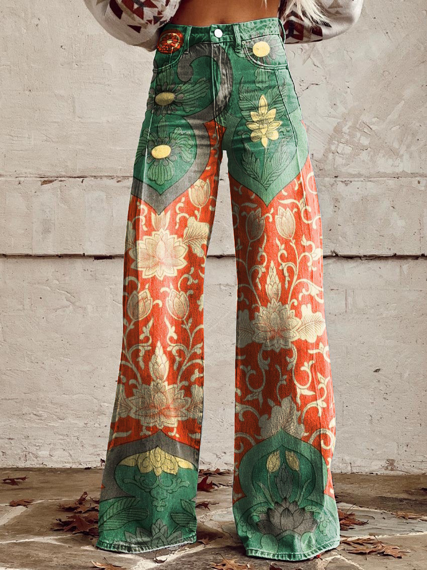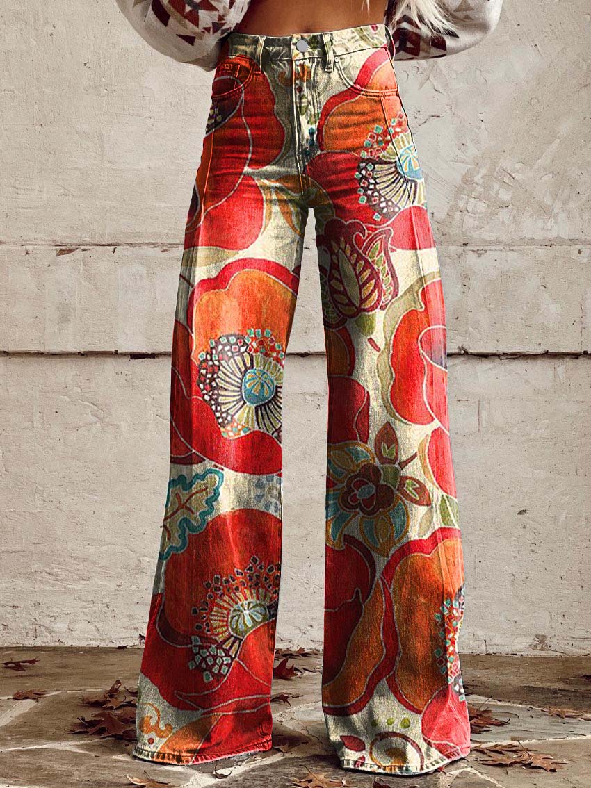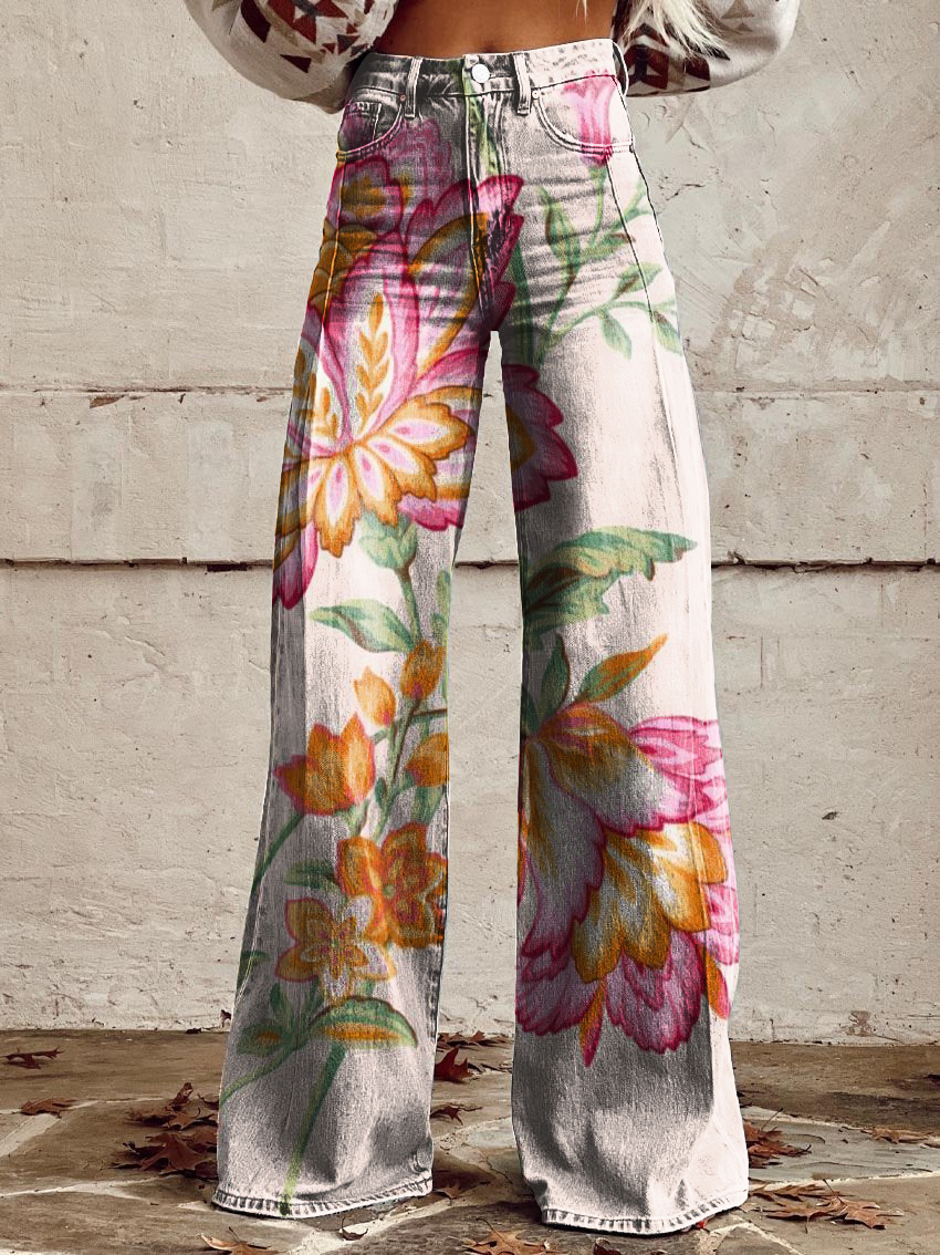 Women's Retro Colorful Floral Art Casual Wide Leg Pants