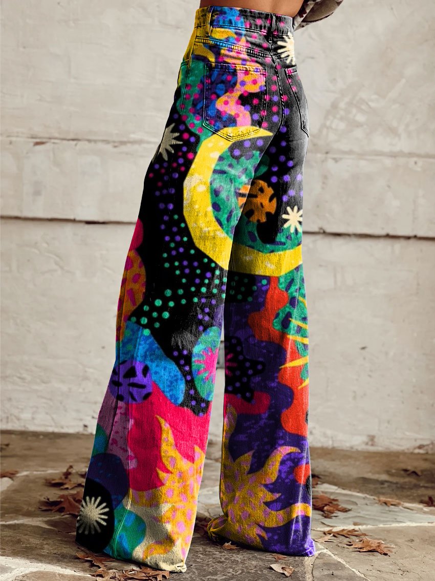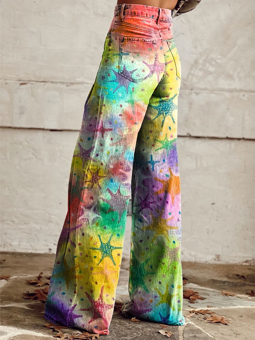 Women's Vintage Colorful Stars Print Casual Wide Leg Pants