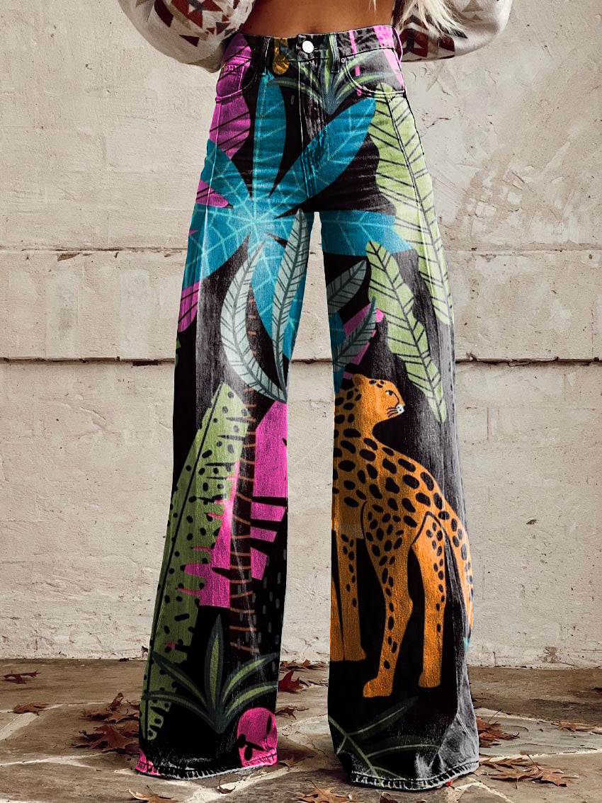 Women's Retro Rainforest Animal Casual Wide Leg Pants
