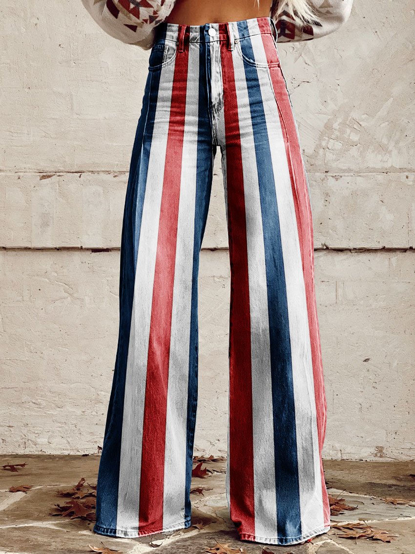 Women's Vintage Stripes Print Casual Wide Leg Pants