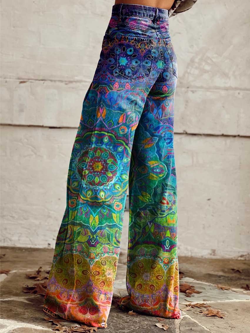 Women's Retro Ethnic Floral Art Casual Wide Leg Pants