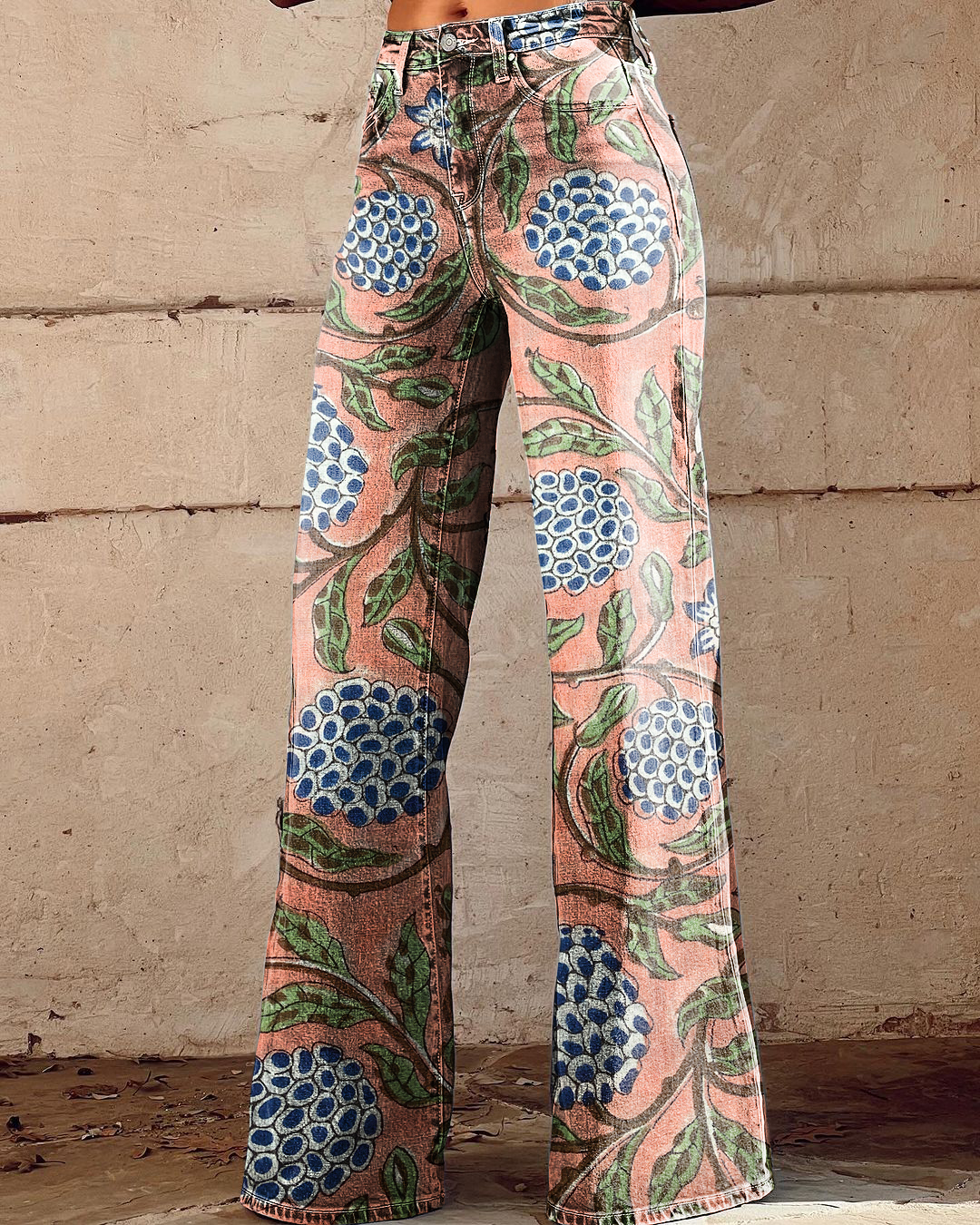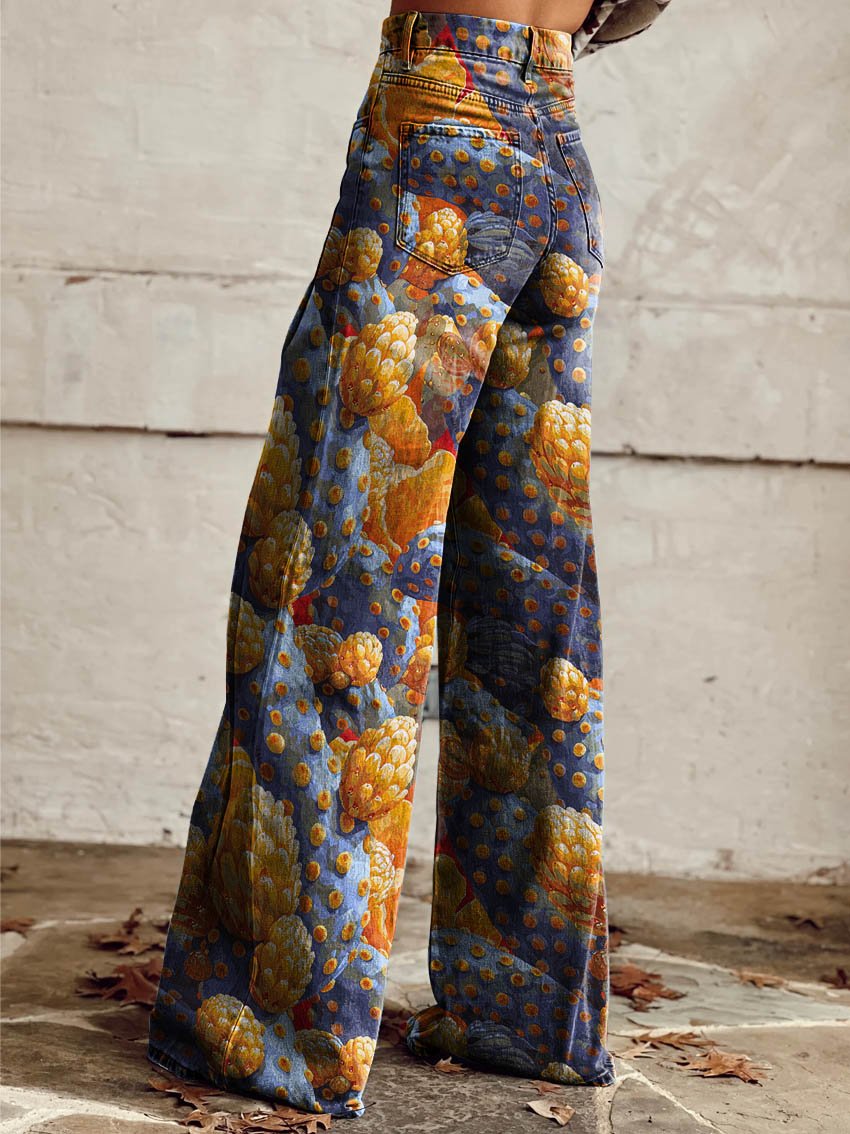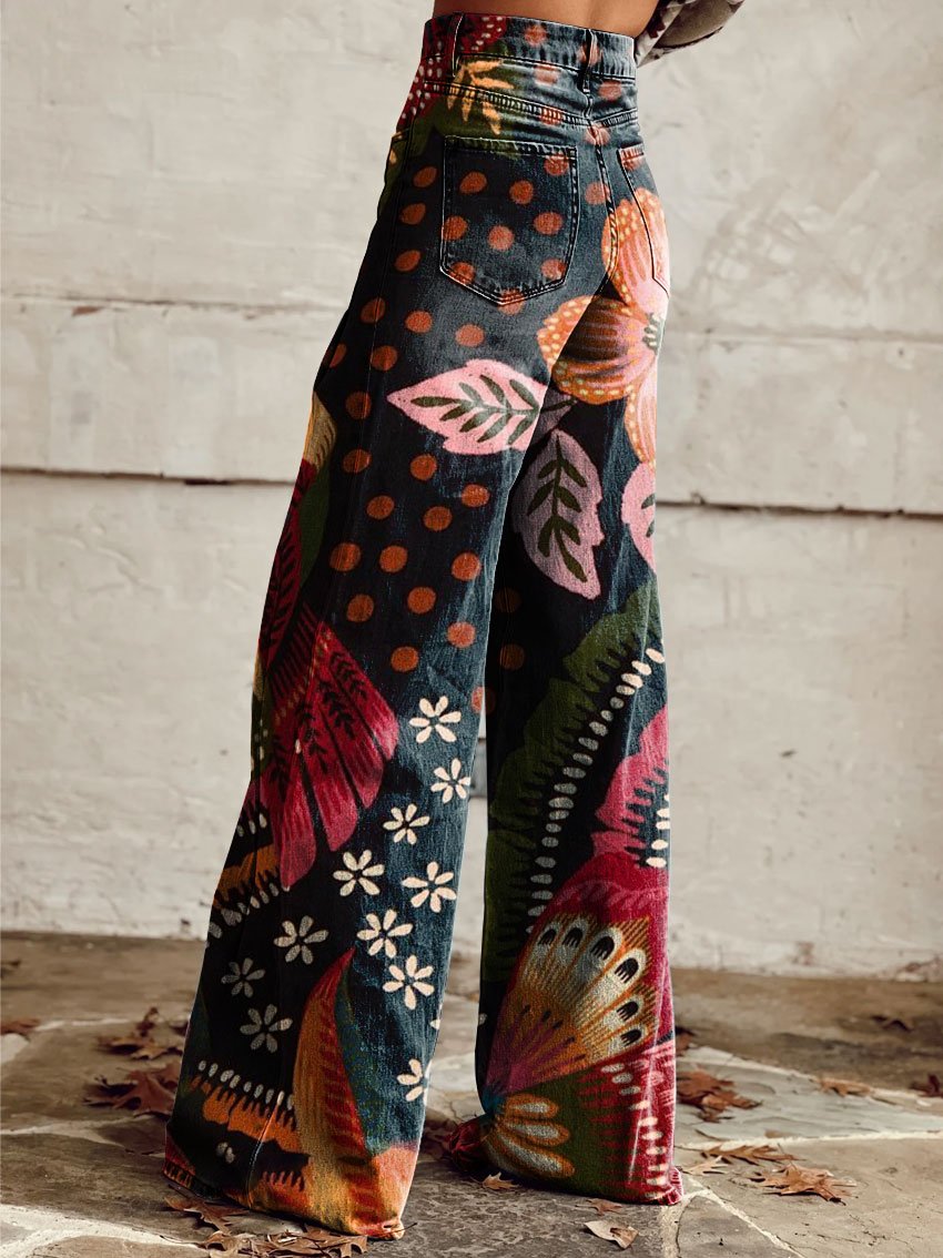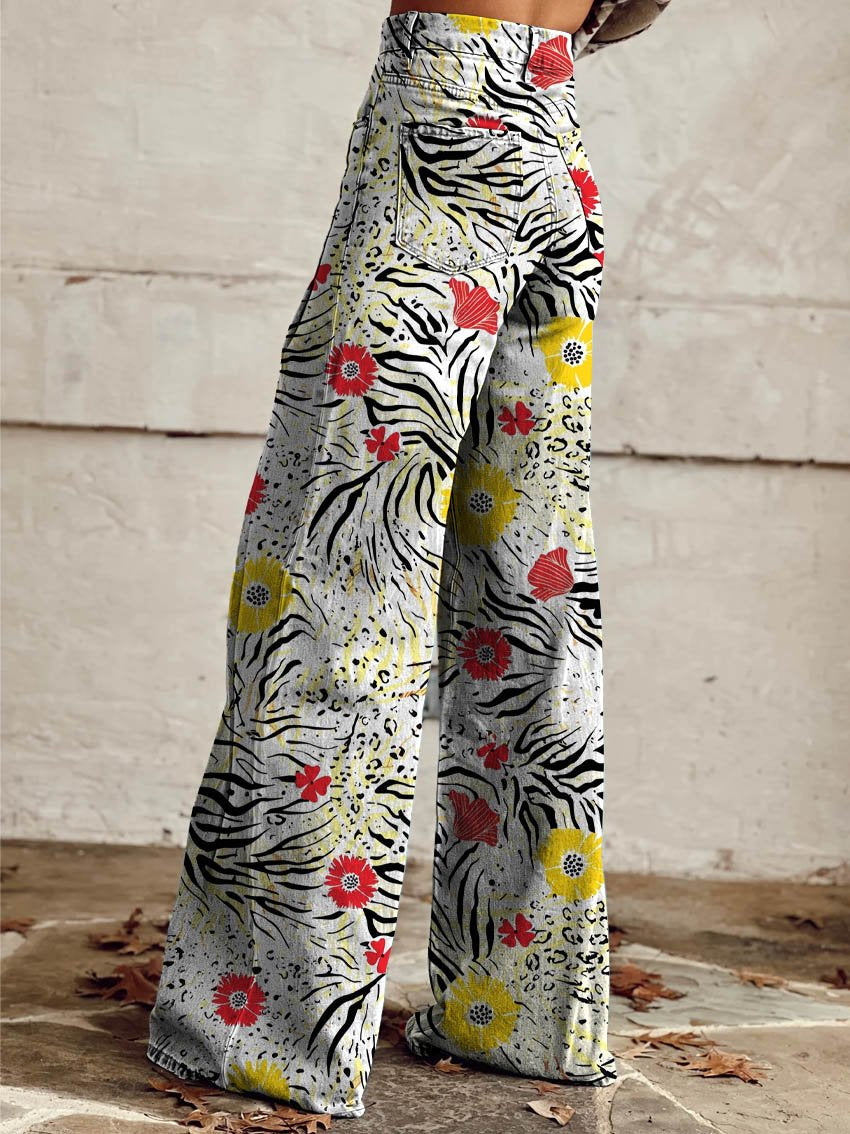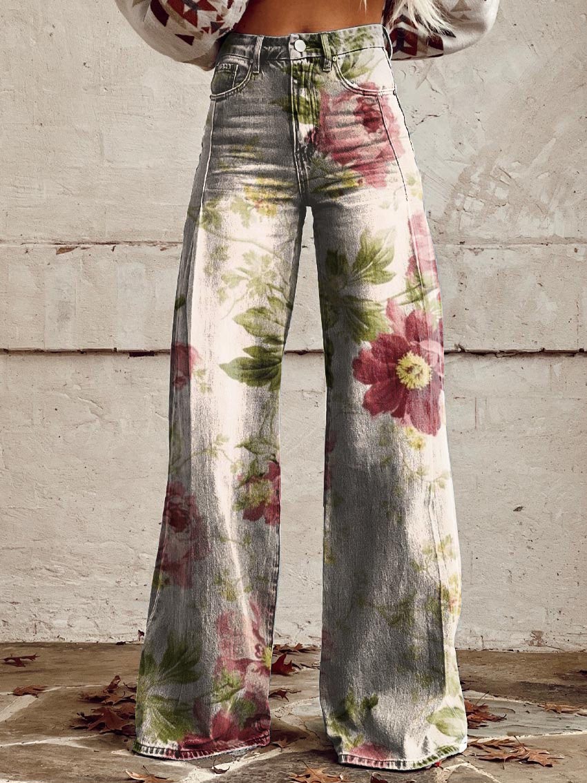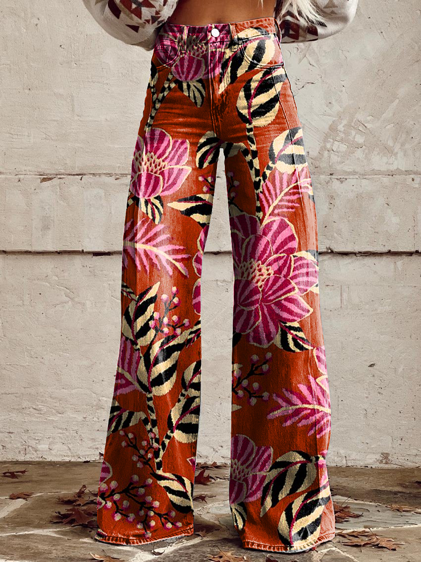 Women's Retro Floral Art Casual Wide Leg Pants