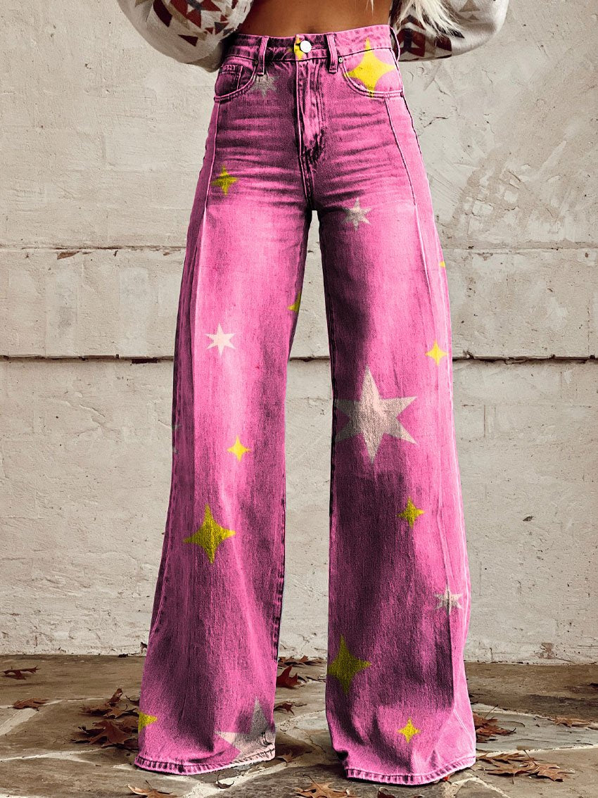 Cute Star Women's Print Casual Wide Leg Pants