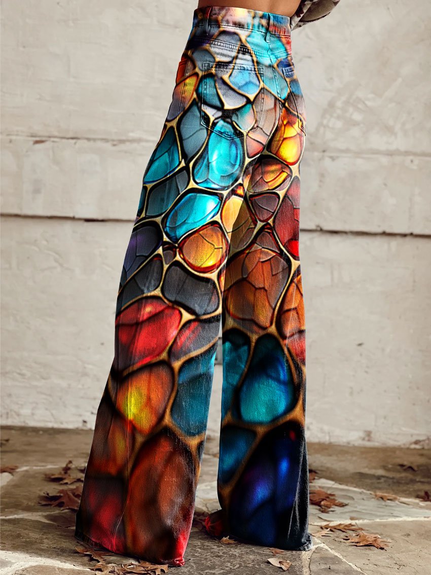Women's Abstract Colorful Broken Texture Print Casual Wide Leg Pants