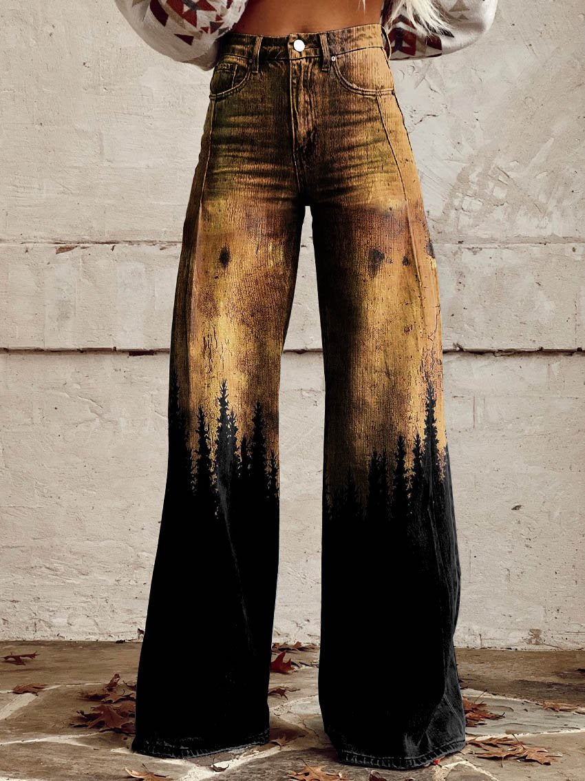 Women's Forest Silhouette Print Casual Wide Leg Pants