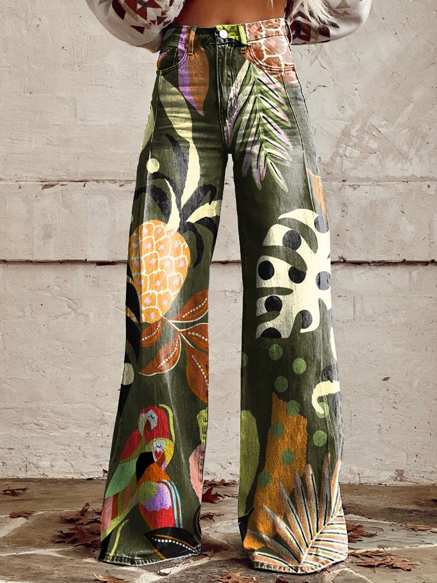 Women's Retro Tropical Fruit Casual Wide Leg Pants