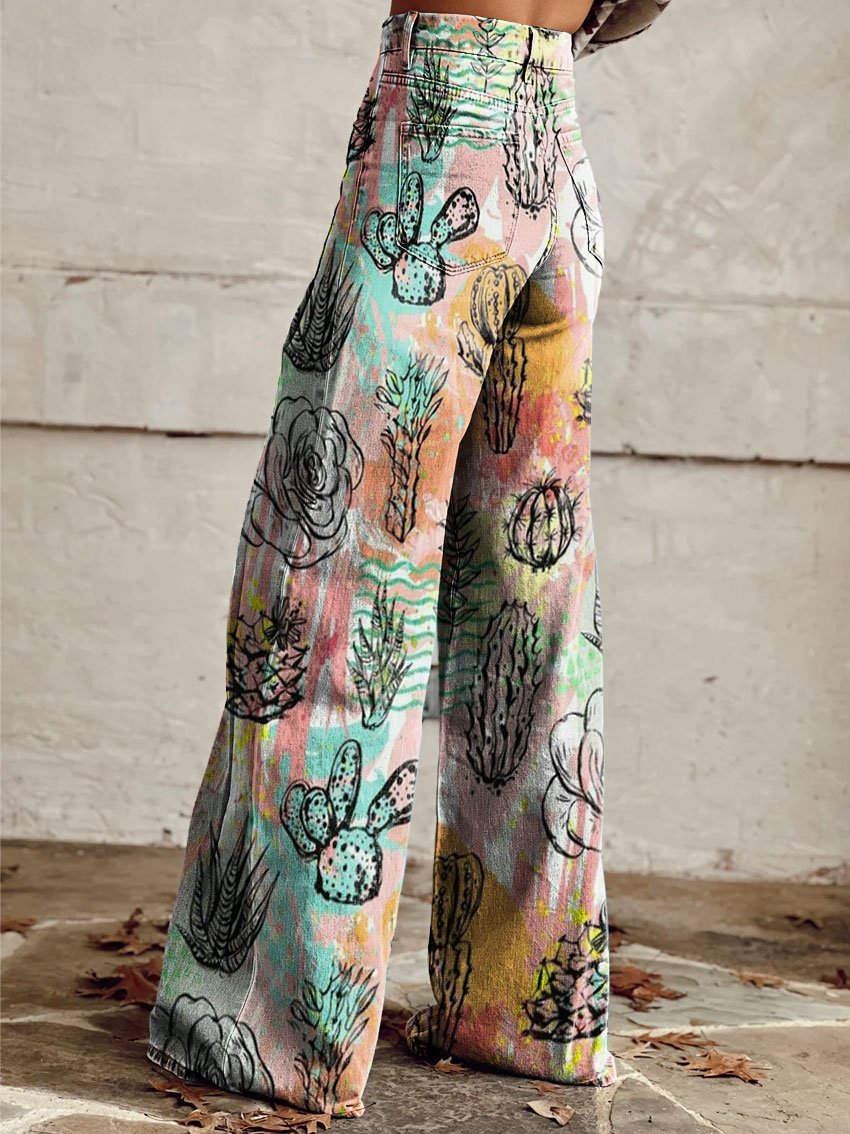 Women's Cactus Print Casual Wide Leg Pants