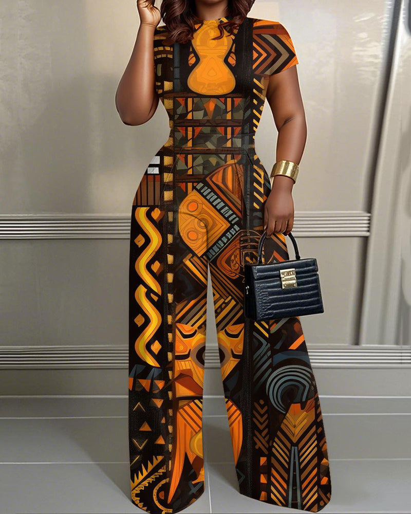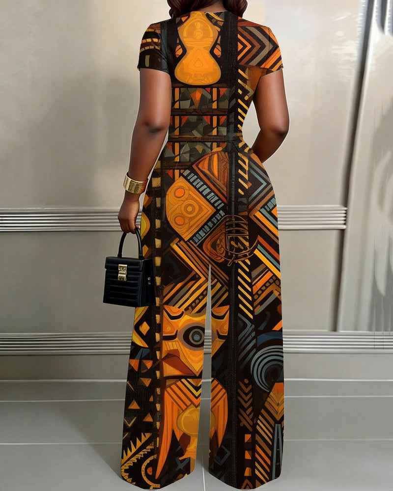 African Tribal Print Abstract Design Print High Waist Wide-leg Women's Two-piece Set