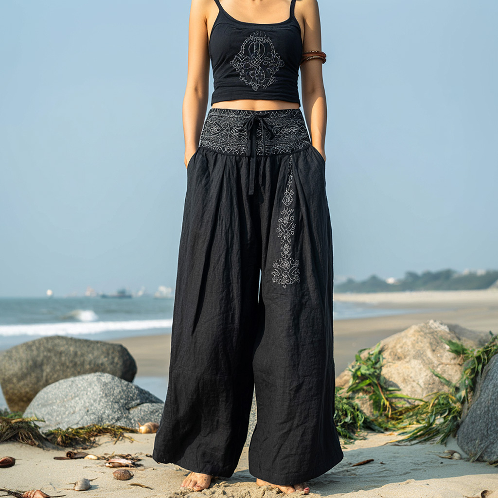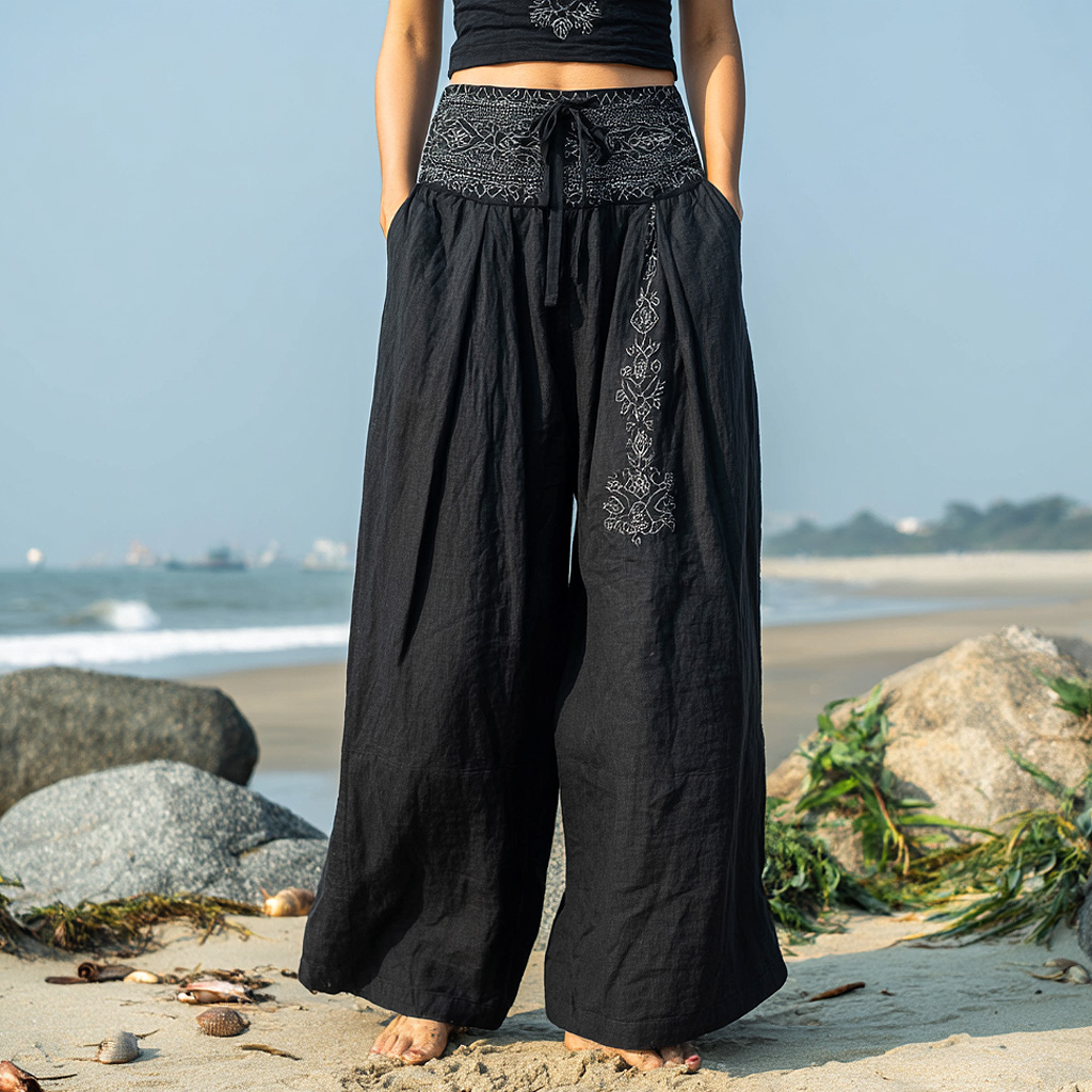 • Design Elements: Intricate Embroidery on Waistband and Leg Side, Adjustable Drawstring Waist