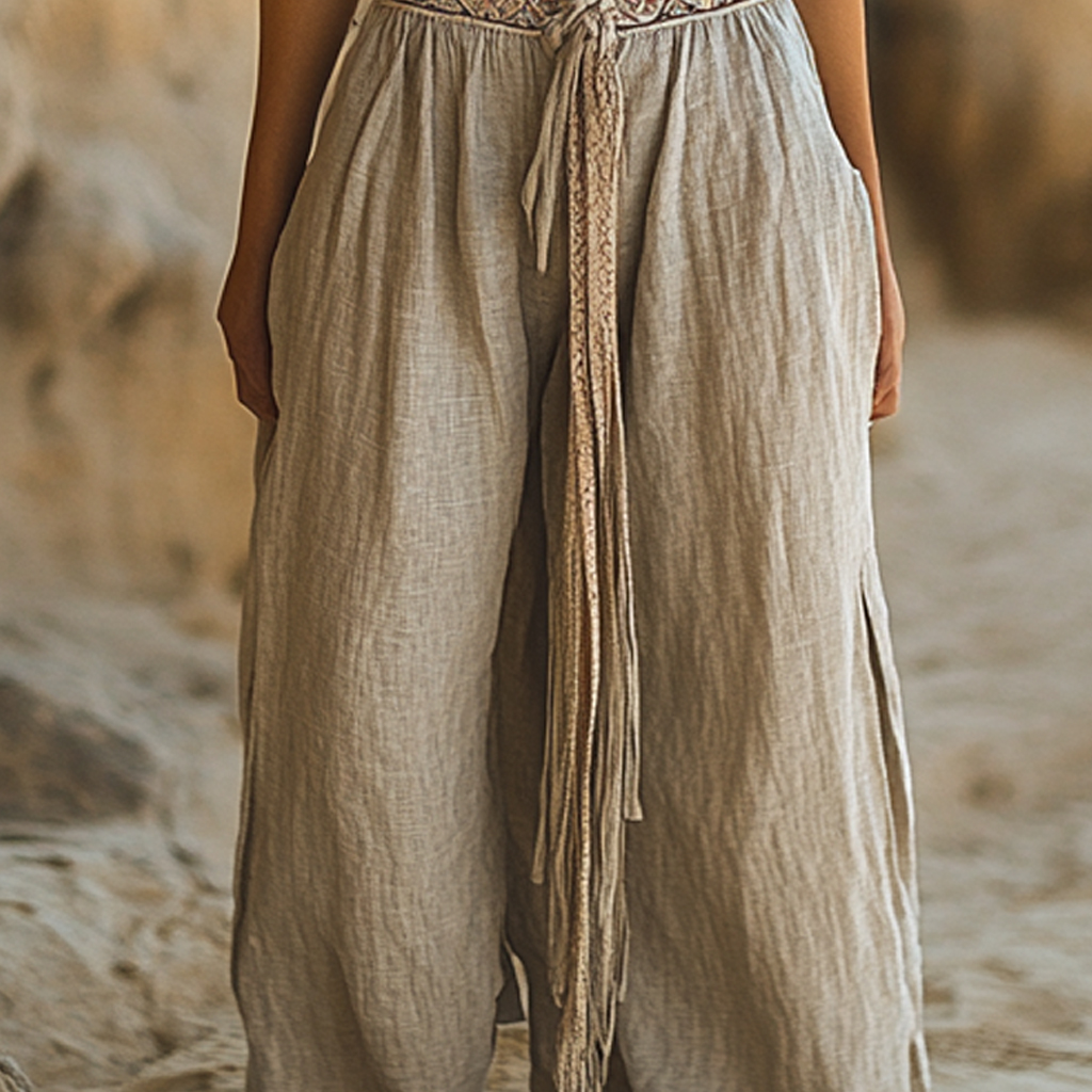 • Design Elements: Adjustable waist tie, tassel detailing, relaxed fit