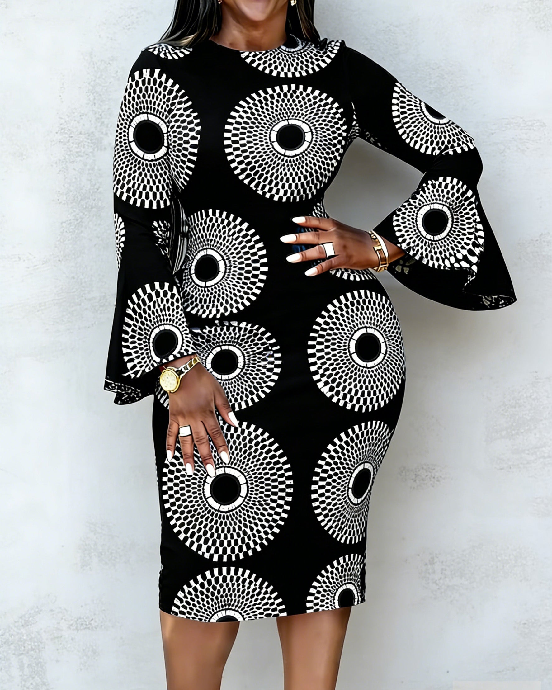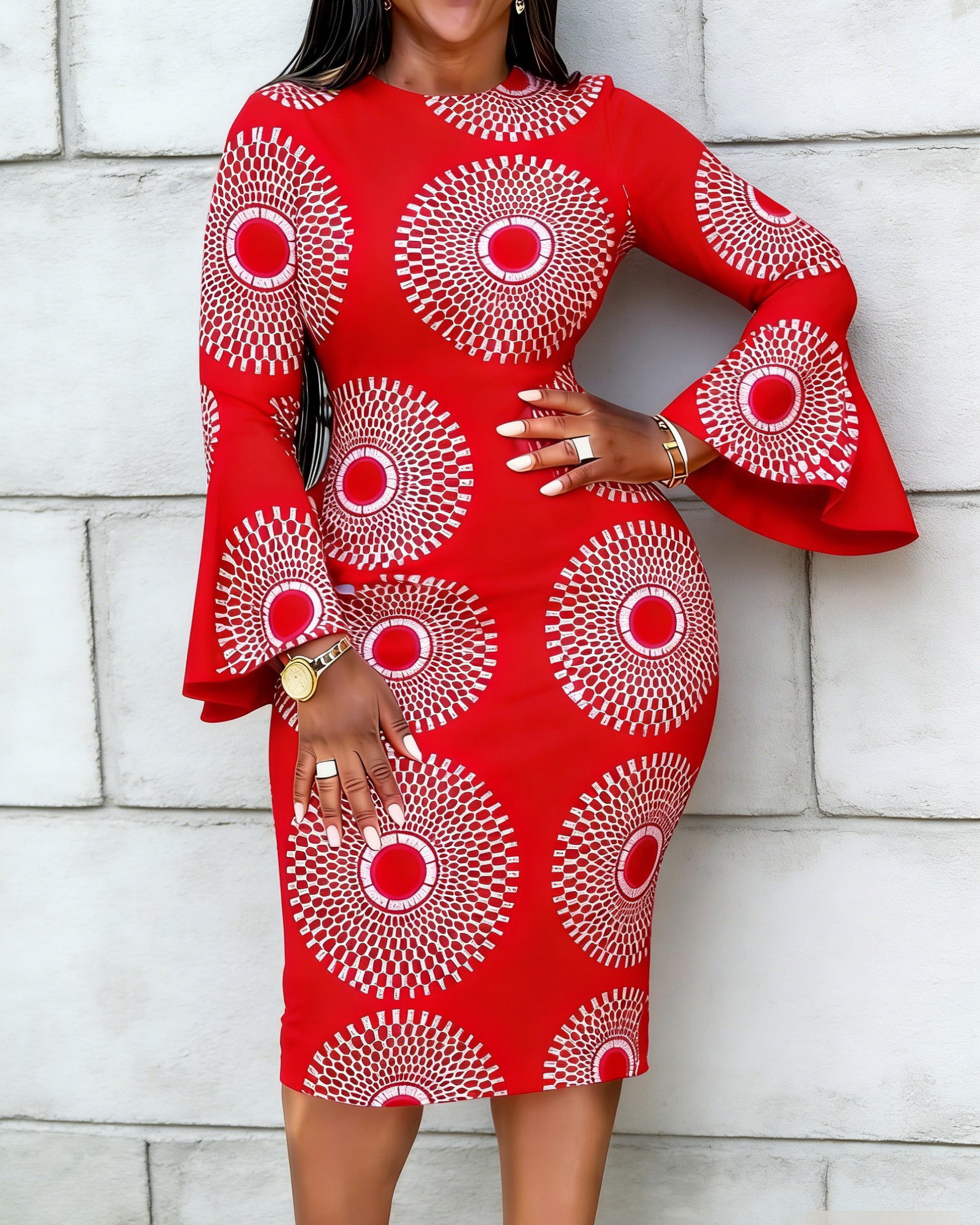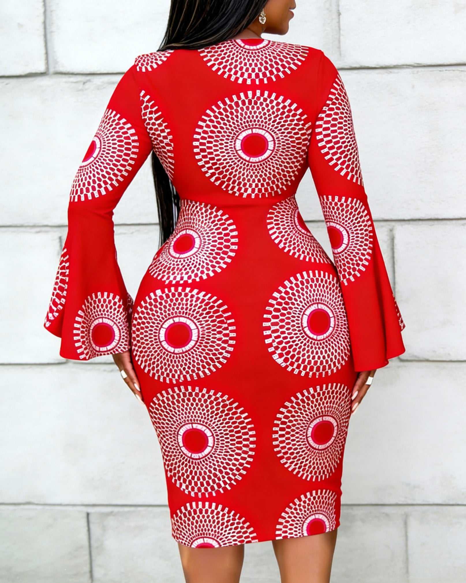 Classic Ankara Polka Dot Print Flared Sleeves Mini Dresses