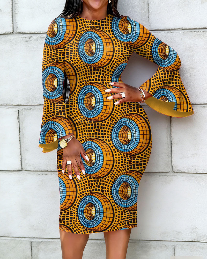 Geometric Ankara Inspired Prints Flared Sleeves Mini Dresses