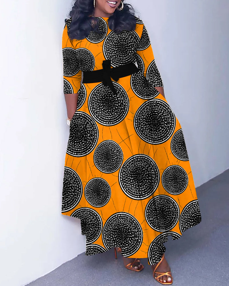 Kente Cloth Sytle Straps Pockets Maxi Dress