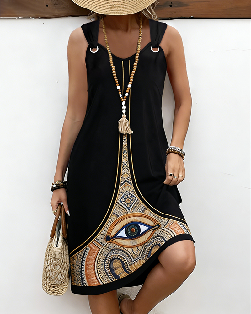 The Eye of Egypt Prints Circular Ring A Line Sleeveless Dress