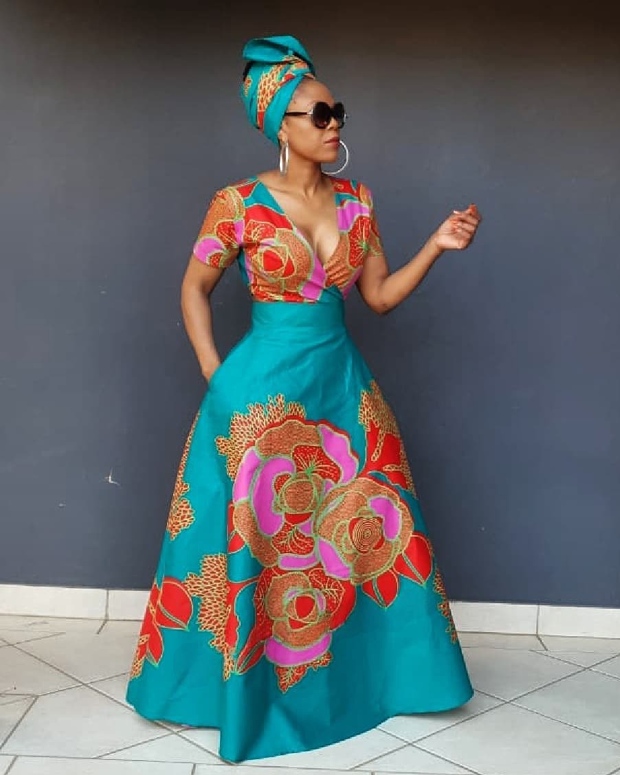 V Neck Beautiful Red Flowers Short Sleeve Maxi Dress