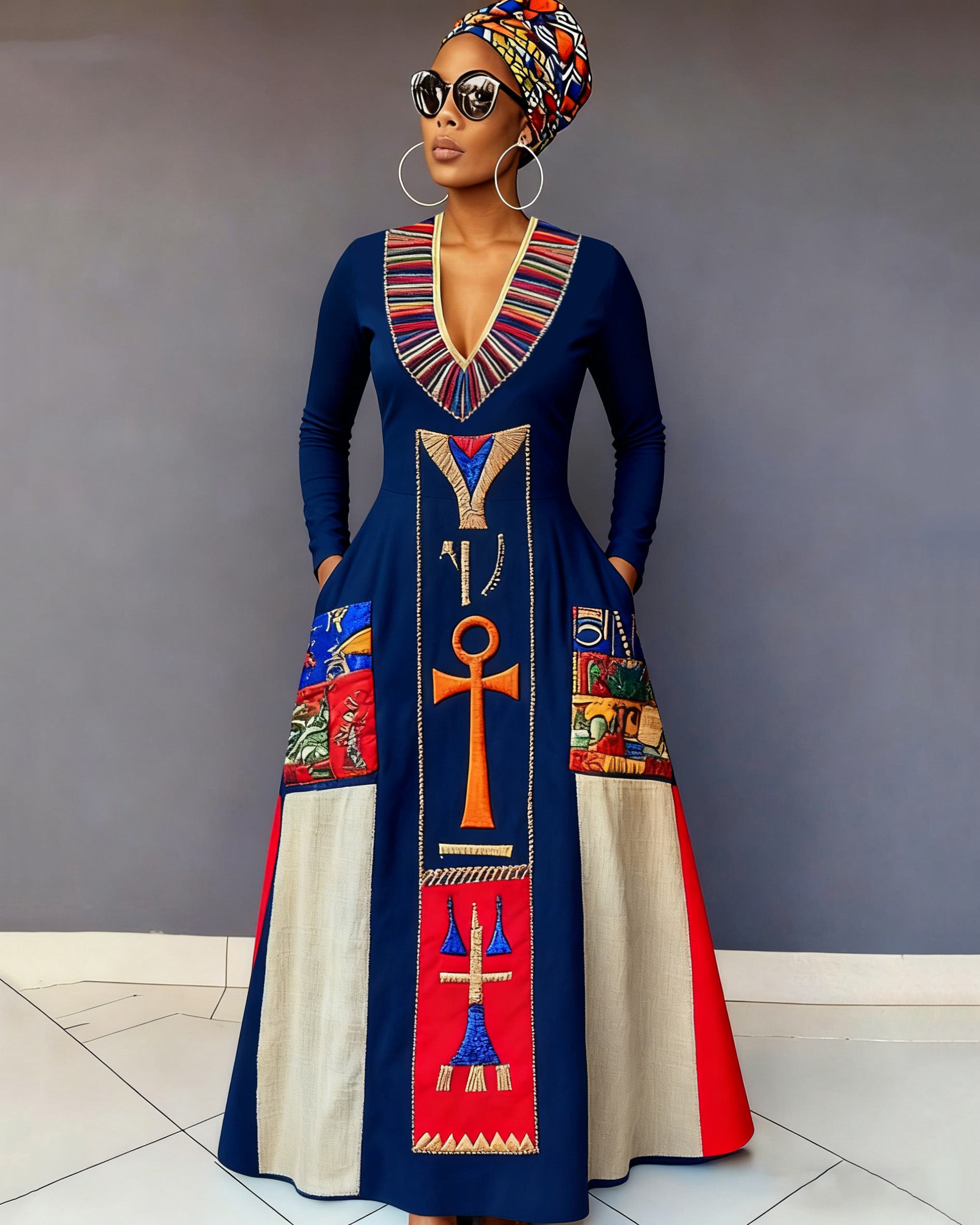 Vintage Ancient Egyptian Eye Of Horus Art Print Long-Sleeved Maxi Dress