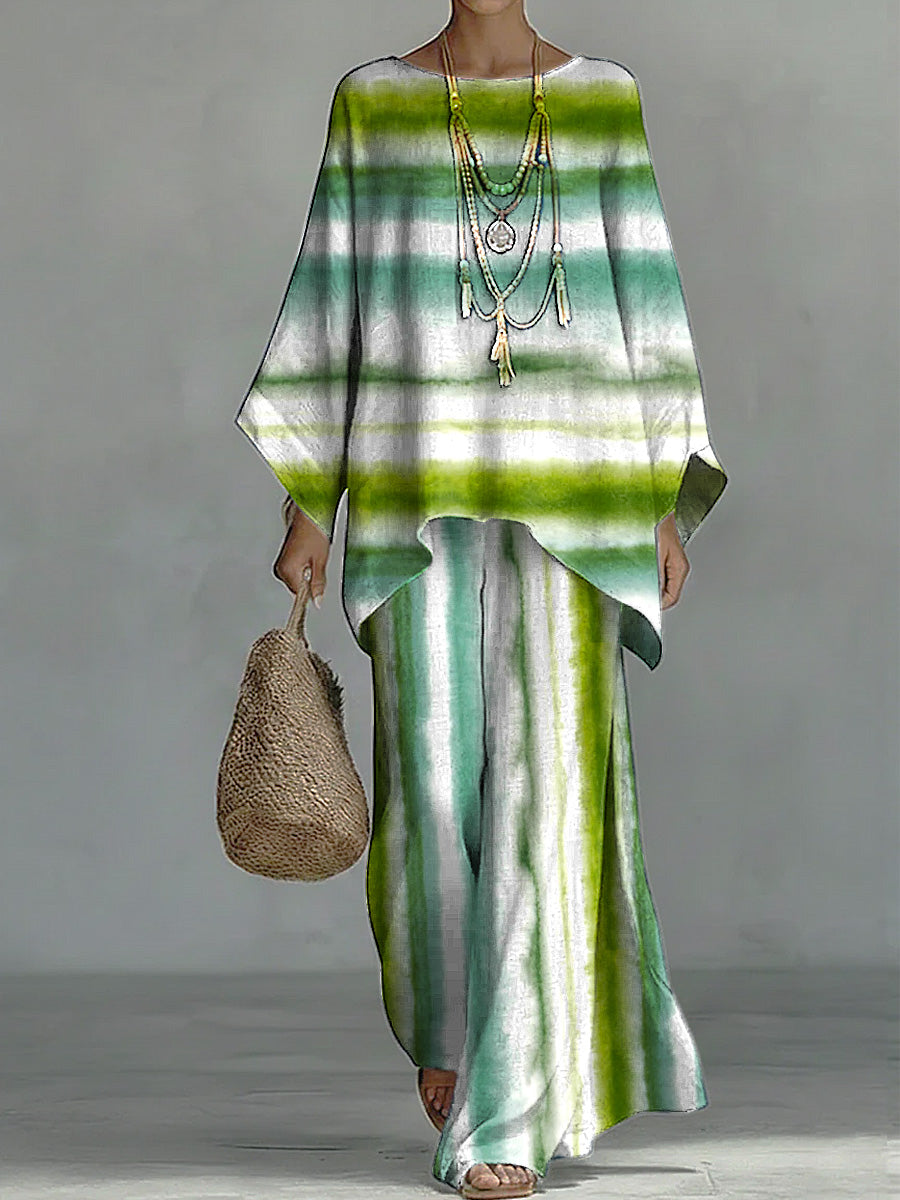 Women's Retro Tie-dye Gradient Pattern Long-sleeve Top And Pants Set